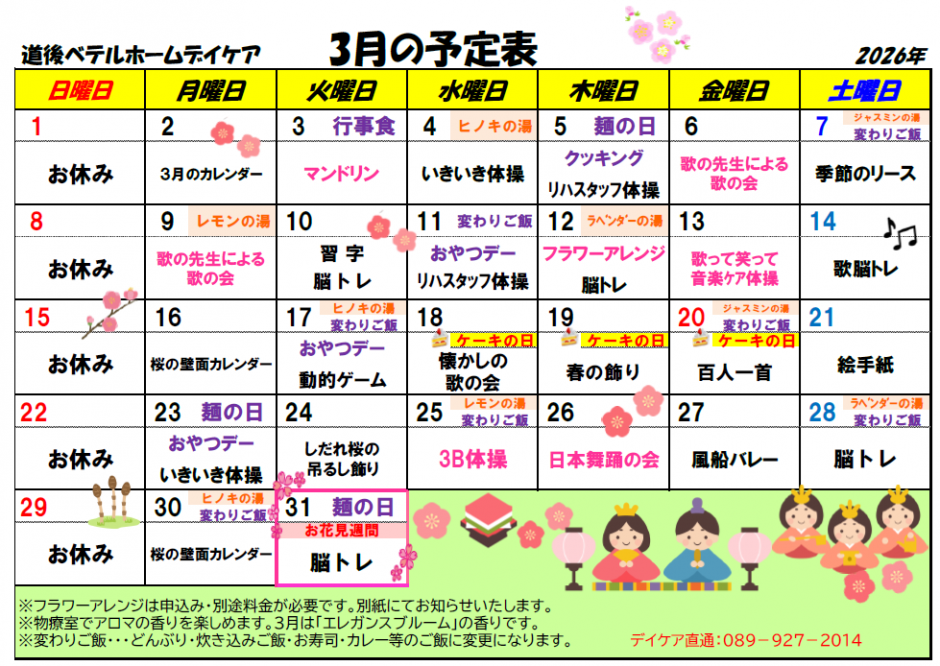 デイケア予定表