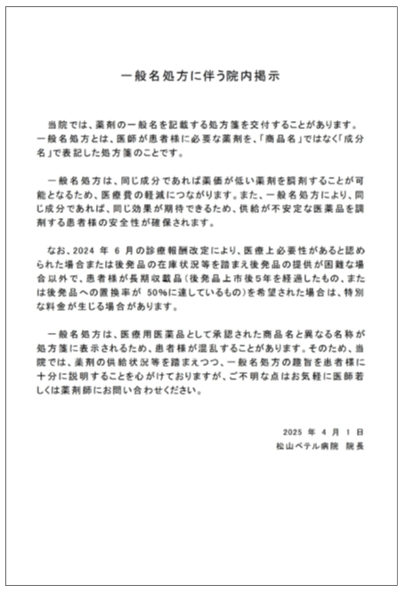 令和6年度診療報酬改定・介護報酬改定を機に、院内に掲示している書面等をホームページへ掲載することが義務付けられました。書面掲示物および重要事項説明書の画像をクリックすると、PDFでの閲覧およびダウンロードが可能となります。