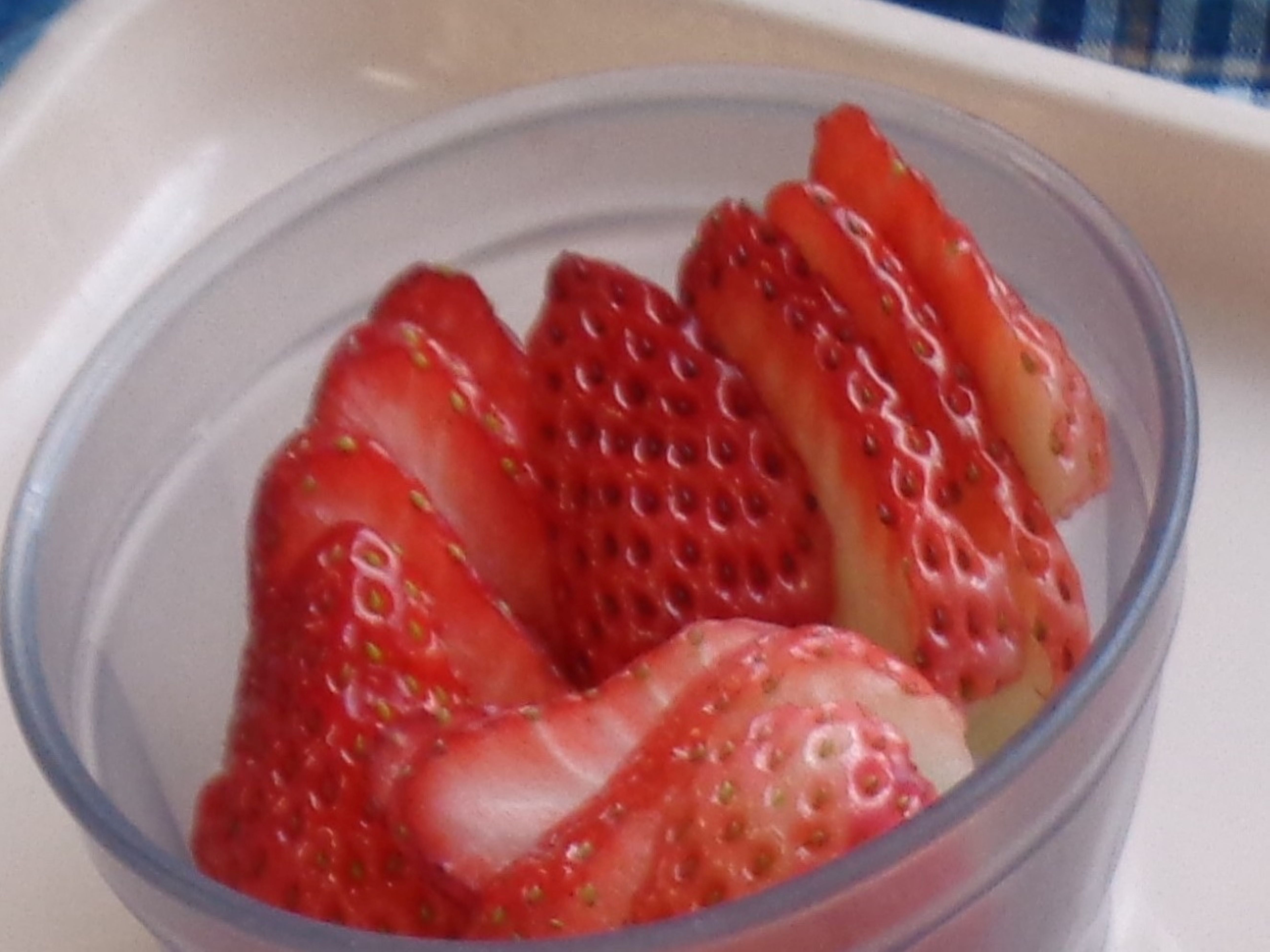 糖尿食の患者さまには砂糖を使用したデザートの代わりに苺です。(写真4)