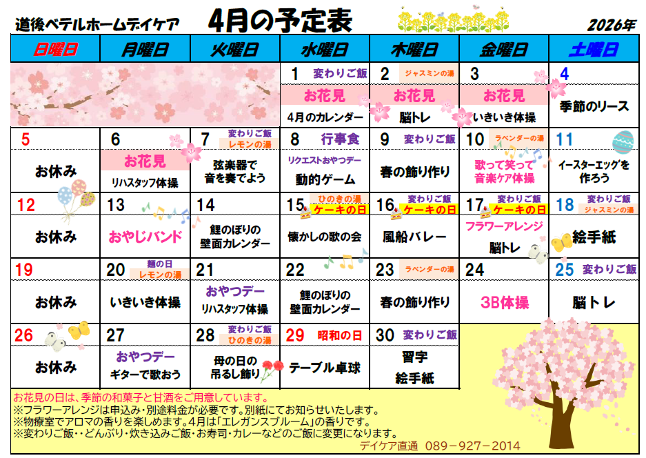 通所リハビリテーション予定表と活動紹介を更新